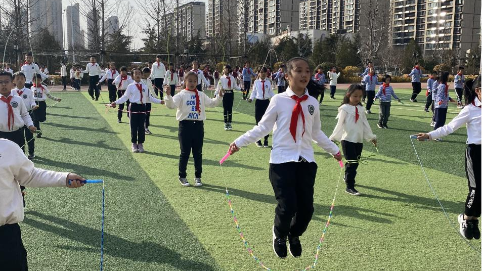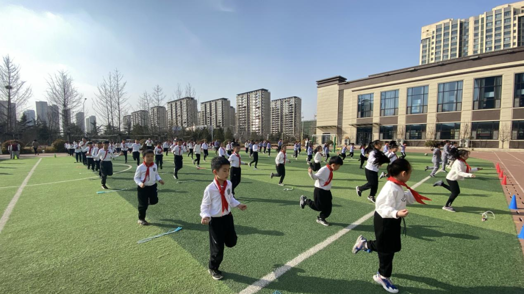 春风得意,吹面不寒,如剪似裁,唤醒百花。在春风的拂动下,潍坊高新金马公学三年级的同学们迎着春日的暖风,挥动彩绳,摇臂生辉,欢洒汗水,落地生花,一场别开生面的跳绳比赛开始了。