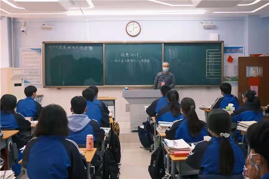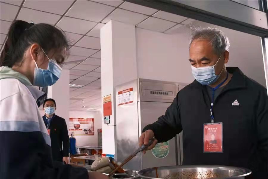 2022年春天疫情突袭,为保障新疆部在校学生的健康安全,潍坊中学校园完全封闭,新疆部20余位教师主动请缨,全程陪伴学生封闭在校。其中有一位满头银发、笑容和蔼的老教师尤其引人注目,他就是3月底即将退休的潍坊中学新疆部李明斗老师。