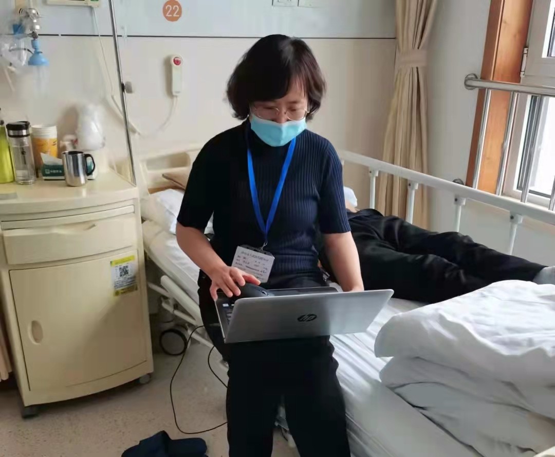 停课前夕父亲就生病了,郑老师在医院陪床分不开身,只能留七十四岁的老母亲独自在家。而最令郑老师放心不下的就是班里的学生。在医院,郑老师几经周折才借到电脑,照顾生病老父亲的同时,经常备课到后半夜,全力确保线上教学的质量。作为班主任,郑老师还要做好各种信息统计,经常忘记吃饭,寡言的老父亲对这忙碌的女儿是看在眼里,疼在心里。而作为女儿,郑老师内心却常常自责无法多抽时间陪陪父亲,只得强忍着眼中的泪水坚持工作。