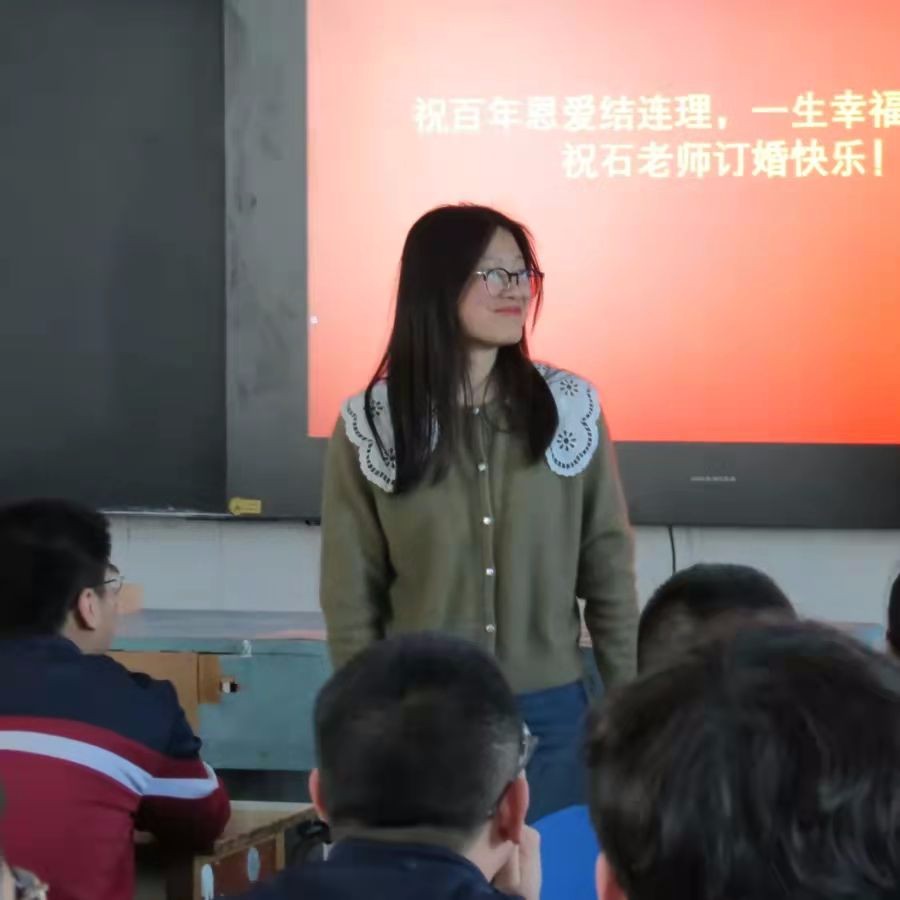 学校党总支书记、校长代表学校通过视频连线,向石老师的家人表达了对这对新人深深的祝福;石老师的喜糖,也将是学生、同事甜蜜的回忆;而学生、同事最真挚的祝福,亦将是石老师一生温馨的印记。