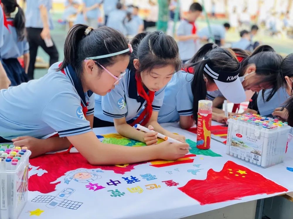 经过一个多小时的创作,一幅幅构思精巧、主题鲜明、色彩绚丽的画面逐渐呈现:雄伟壮丽的天安门、鲜艳夺目的五星红旗、翱翔太空的载人飞船……色彩斑斓的百米画卷充满童心,展现了他们心中的中国梦,表达了对祖国最美好的祝愿,同学们用手中的画笔,用自己的行动为迎接党的二十大胜利召开送上最真挚的“礼物”。(记者 于大龙 王越 通讯员 秦秀霞 张祎)