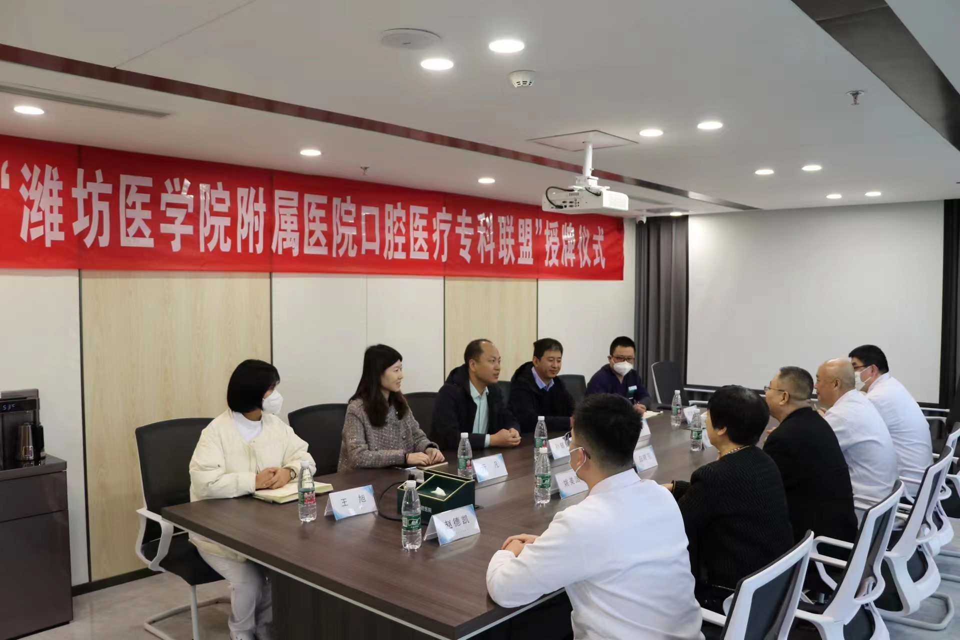 潍坊医学院附属医院党委委员、临床医学院副院长孙银贵,附属医院事业发展部副主任亓凡、口腔颌面外科主任孙学辉带领专家一行四人以学术交流、示教等方式对潍坊常青树口腔医院进行指导,并对潍坊常青树口腔医院进行联盟授牌。潍坊常青树口腔医院总经理白晓亮、副总经理姚美洁、副院长刘胜德以及全院中层干部参加了本次活动。