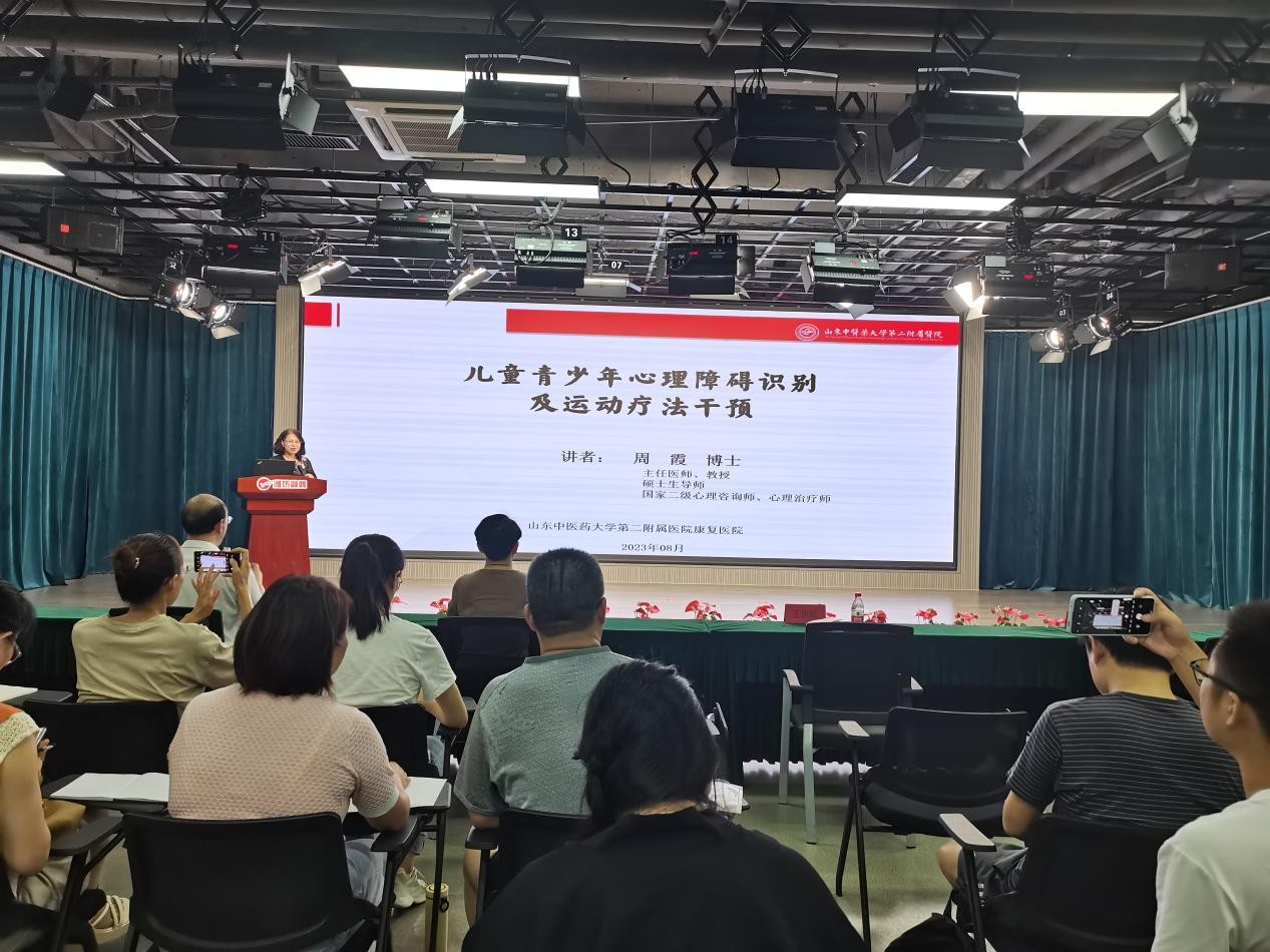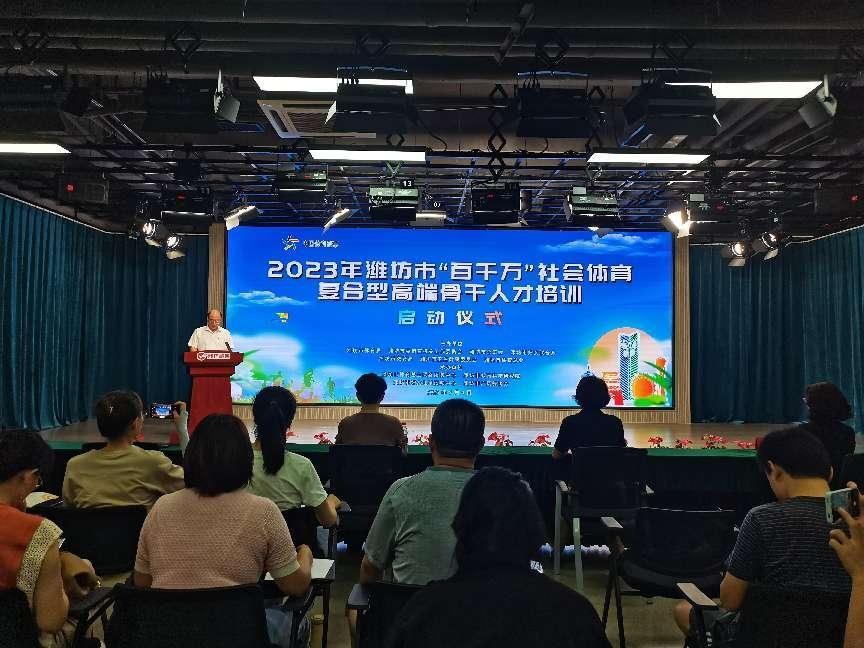 8月4日,2023年潍坊市“百千万”社会体育复合型高端骨干人才培训班启动。活动邀请了山东中医药大学第二附属医院康复医院脑病康复科主任,心理康复负责人周霞进行主题为“儿童青少年心理障碍识别及运动疗法干预”的授课。潍坊市体育局党组成员、潍坊市体育总会主席王妍妮,潍坊市教育局总督学李萍,潍坊市体育总会副主席王磊出席了开班仪式,潍坊高校教授,市直体育系统高级教练员、科研人员,省市体卫融合试点单位技术骨干,五个城区中小学体育骨干教师和体育教研员共计83人参加开班仪式和线下现场学习,潍坊各区县的中小学体育老师同时参与线上学习,当天直播收看量达33151人。