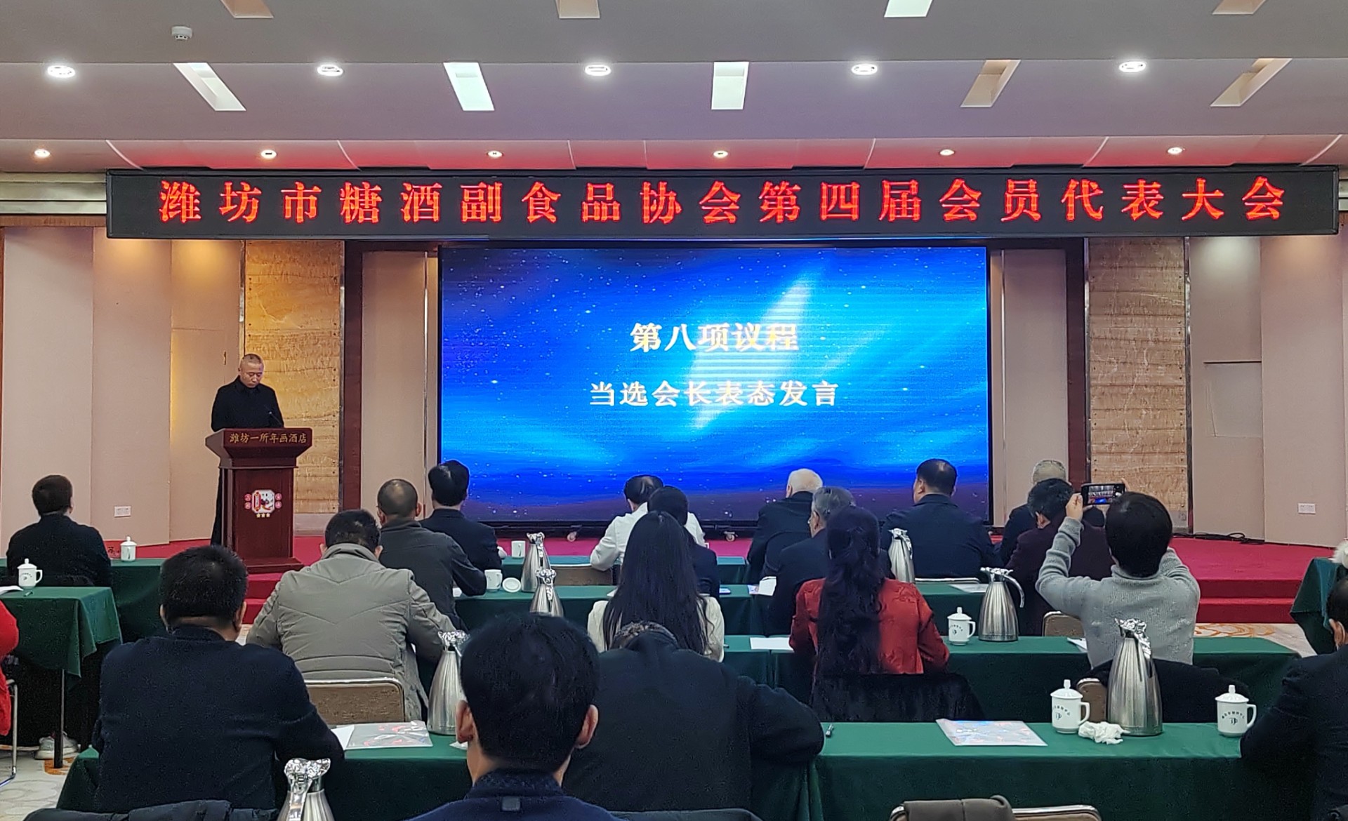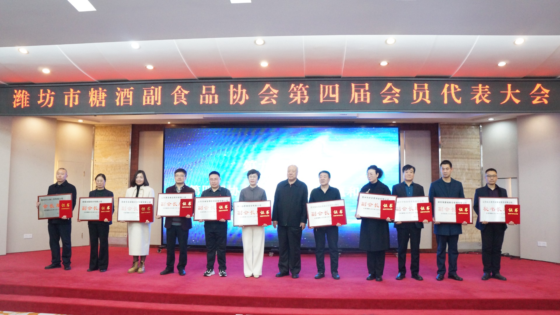 12月15日,潍坊市糖酒副食品协会第四届第一次会员代表大会召开,会议审议通过了《潍坊市糖酒副会品协会第四届会员代表大会选举办法(草案)》,投票表决《潍坊市糖酒副食品协会章程(草案)》和《潍坊市糖酒副食品协会会员费缴纳标准及管理办法(草案)》,选举了理事单位和协会负责人。潍坊市山清工贸有限公司董事长张延庆当选为新一届协会会长,颜建伟、孙美莹、张庆玉、孙鹏涛、徐瑞玲、何茂山、韩红欣、时培东、梁平当选为新一届协会副会长,王季颂当选协会秘书长,王存杰、韩孝东当选协会监事。