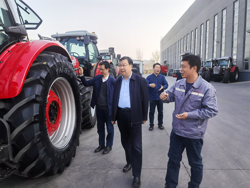 王成端一行参观了企业的大型拖拉机等生产、装配车间,并与企业代表进行了座谈交流。王成端介绍了学校机械专业发展状况、学科设置、科研平台以及校企合作等情况,希望双方今后进一步发挥各自优势,在科研项目申报、学生实习实训及就业等方面进行深入合作。公司董事长毛小亮简要介绍了企业的发展历程,就当前企业的最新成果进行了展示说明,并希望未来在项目创新合作、学生实习就业等方面进行深层次的交流与合作。