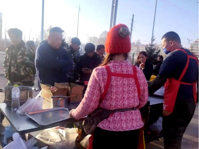 于是,12月20日,夫妇二人找到同做小吃生意的一位朋友,三人紧急购买了鸡蛋、面粉、豆油等制作鸡蛋灌饼的原料,以及棉被、棉大衣、卫生纸、矿泉水等物资,租了一辆厢货车,连同司机四人紧急赶赴灾区。30个小时的车程后,他们抵达甘肃省临夏州积石山县救援营地,第一时间将救援物资捐献给当地部门。