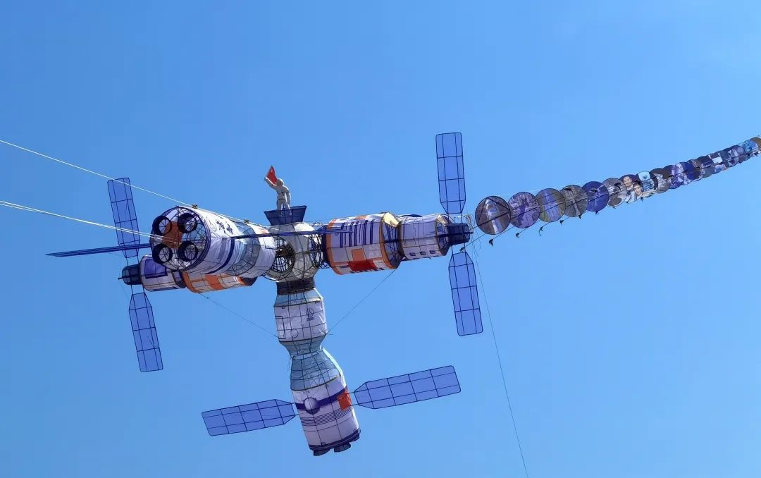 风筝是世界上最早的飞行器,承载着人类飞天的梦想。2016年9月15日至11月18日,潍坊特制造型风筝“飞天木鸢—飞鹰”,作为特殊的搭载纪念物,搭乘天宫二号空间实验室和神舟十一号飞船,成功飞越太空,成为世界上“飞”得最高的风筝。2022年4月17日,“中国空间站”主题风筝成功在潍坊放飞,展现了神舟十三号载人飞船与天和核心舱成功交会对接,以及航天员出舱漫步的过程,庆祝航天员太空归来。潍坊人民用风筝致敬祖国航天事业,表达对中华民族伟大复兴的坚定信心和美好祝福。