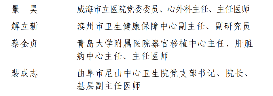 近日,人力资源社会保障部、国家卫生健康委、国家中医药局、国家疾控局发布《关于表彰全国卫生健康系统先进集体、先进工作者及“白求恩奖章”获得者的决定》,潍坊市人民医院荣获“全国卫生健康系统先进集体”称号,潍坊市张晓乙、李群成、曹志唐3人荣获“全国卫生健康系统先进工作者”称号。