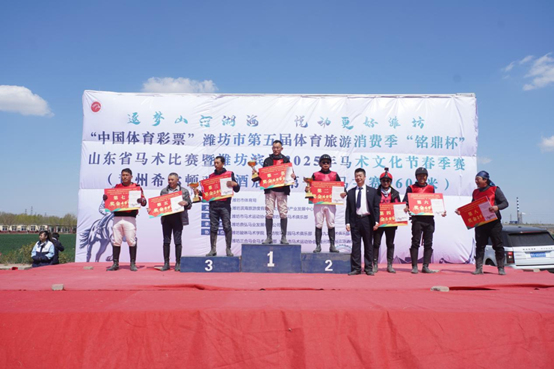 经过激烈角逐,高密凤城马汇骑手罗文江、河北山水马业骑手双喜,潍坊市马术运动协会会员骑手孙钦华分获1200米、4800米和9600米冠军。