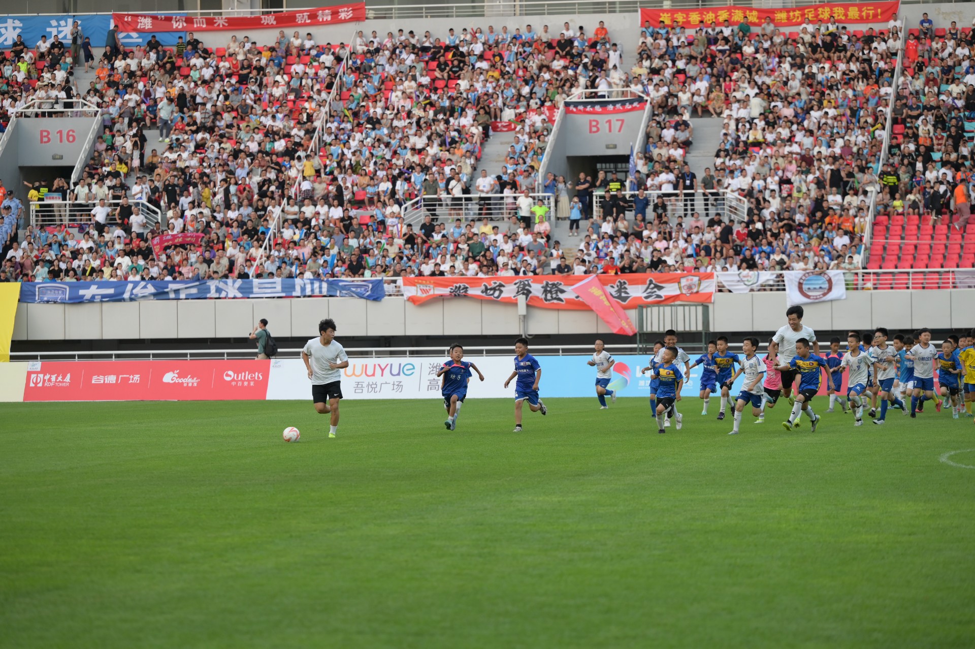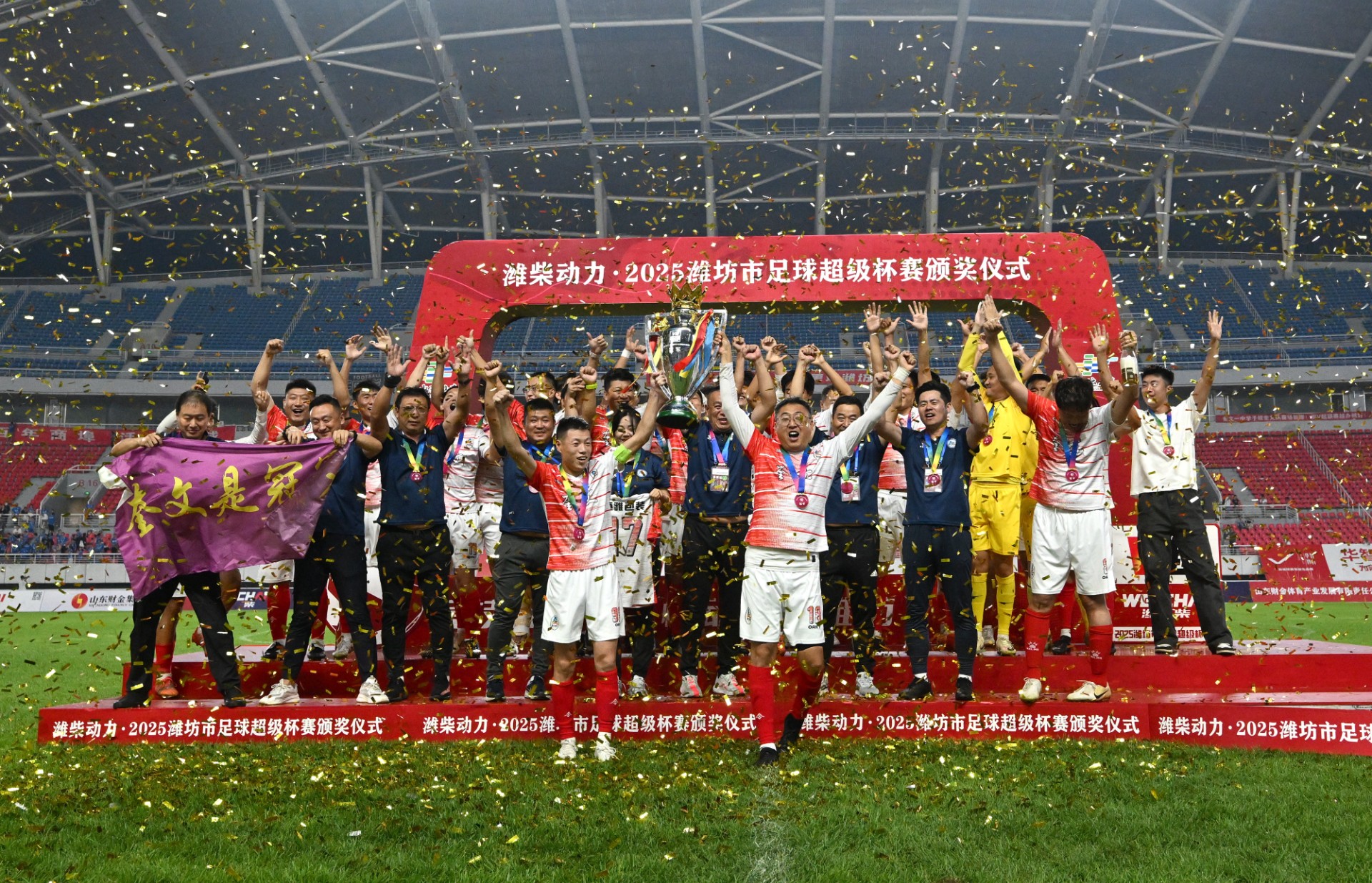 潍柴动力·潍坊市足球超级杯赛(V超)火爆出圈。在全国地级市中首家举办全域主客场制足球比赛,共16个县市区(功能区)近600名球员参赛,9轮60场比赛吸引30万现场观众、超4000万人次线上观赛,话题播放量超7000万,创造潍坊本土赛事传播纪录,推动足球运动走向大众生活,特色文化、景区、产品借助赛事广泛传播。