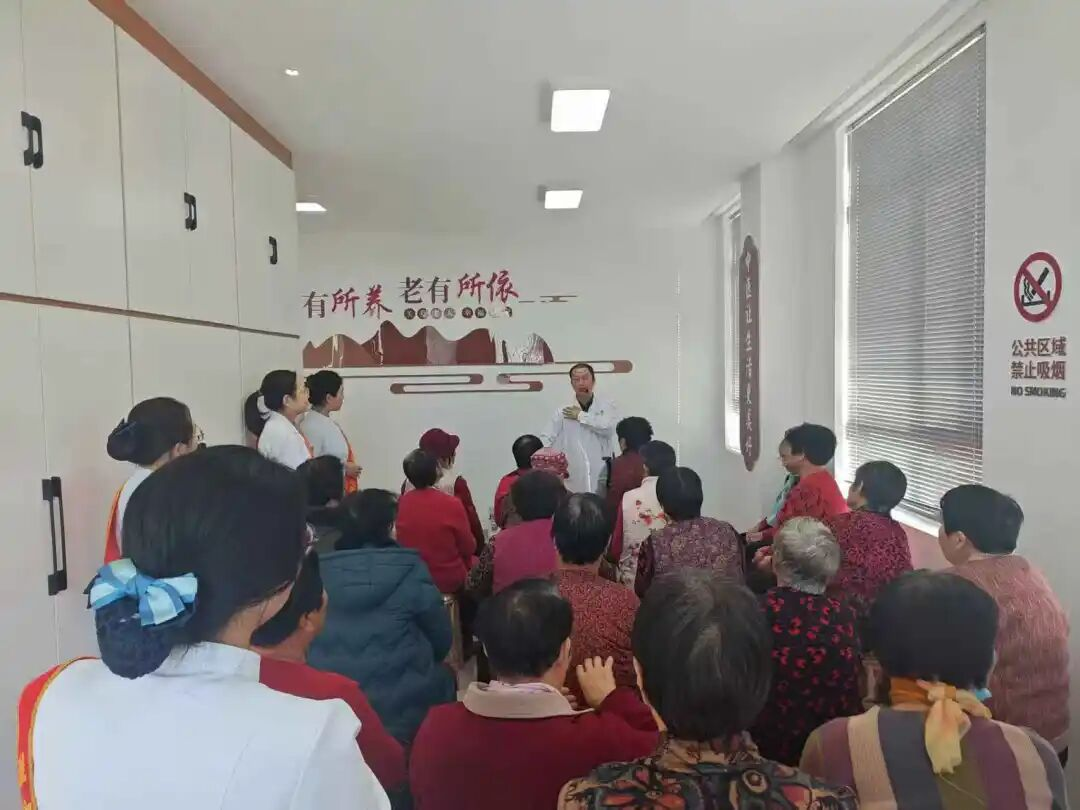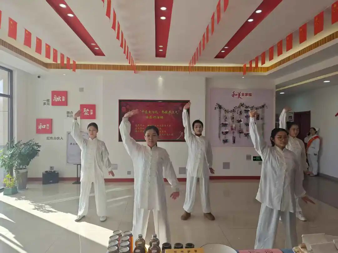 在一楼大厅中开展的八段锦教学,伴随着舒缓的音乐,居民们跟着老师一招一式认真练习,在行云流水的动作中感受传统养生功法的独特魅力。