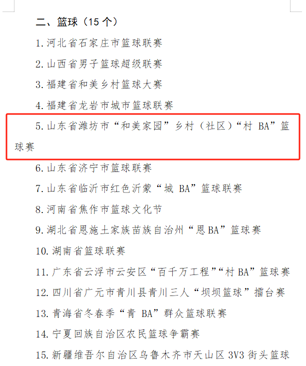 速豹新闻网苗露 肖莹坤潍坊报道:近日,国家体育总局公布2025年度全国群众“三大球”精品赛事案例名单,由中共潍坊市委宣传部、潍坊市体育局、潍坊市农业农村局、潍坊市商务局、潍坊市文化和旅游局、潍坊市体育总会共同主办的“和美家园”乡村(社区)“村BA”篮球赛成功入选。这一荣誉标志着潍坊市在探索基层体育赋能乡村振兴、推动全民健身与精神文明建设深度融合方面,走在了全国前列。