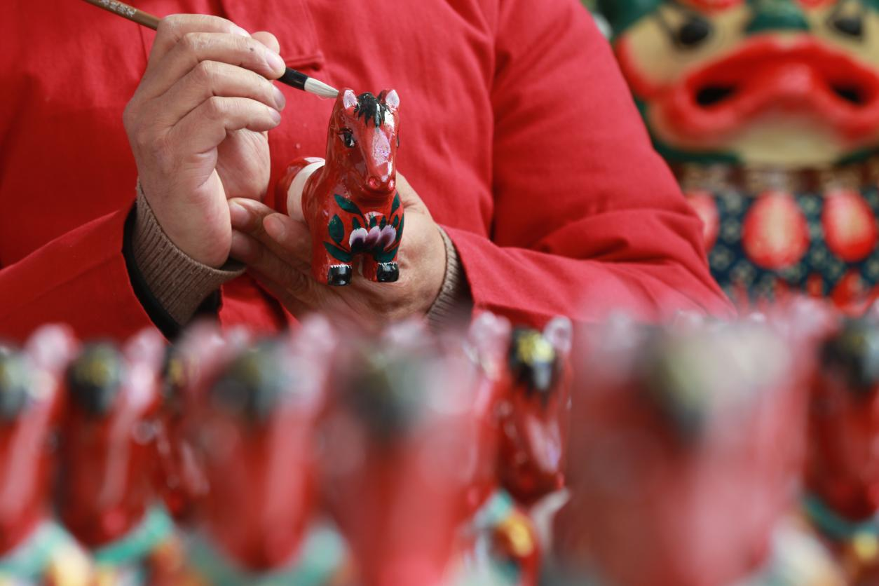 新年伊始,潍坊高密市姜庄镇聂家庄泥塑艺人忙着创作生肖马主题泥塑作品,供应年货市场。聂家庄泥塑是当地传统产业,拓宽了当地群众的增收渠道。2008年聂家庄泥塑被列为国家级非物质文化遗产。