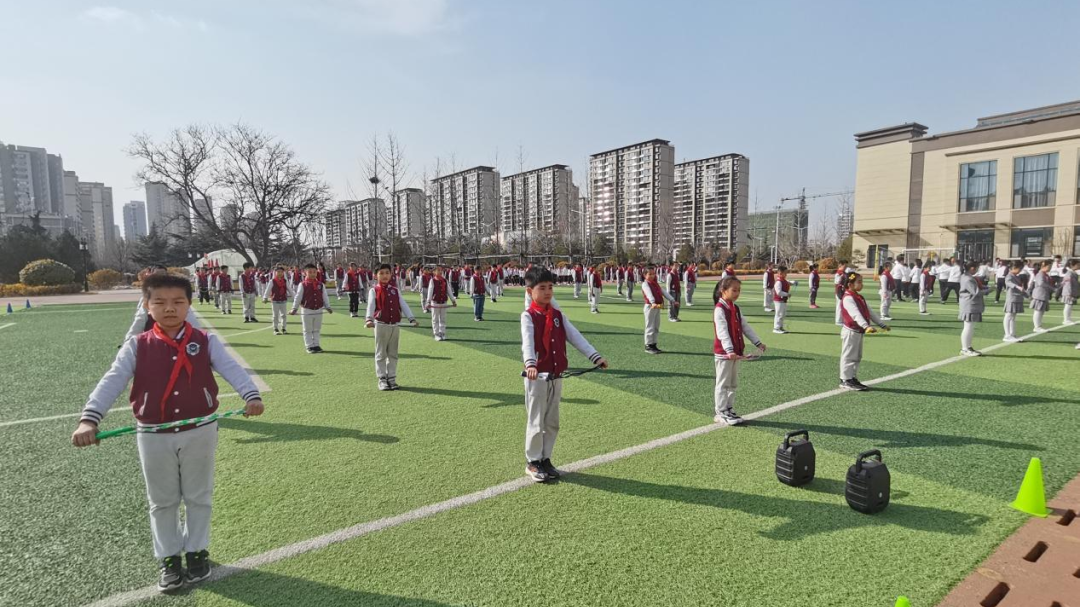 春风得意,吹面不寒,如剪似裁,唤醒百花。在春风的拂动下,潍坊高新金马公学三年级的同学们迎着春日的暖风,挥动彩绳,摇臂生辉,欢洒汗水