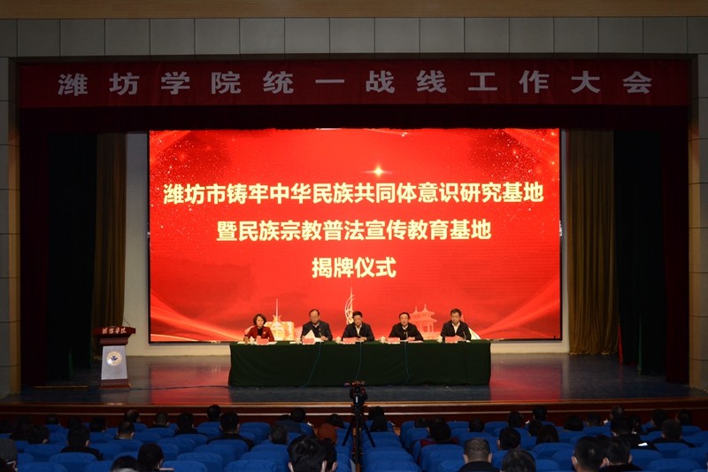 2月10日,潍坊学院与潍坊市委统战部共建的潍坊市铸牢中华民族共同体意识研究基地暨民族宗教普法宣传教育基地揭牌仪式举行。潍坊市委常委、
