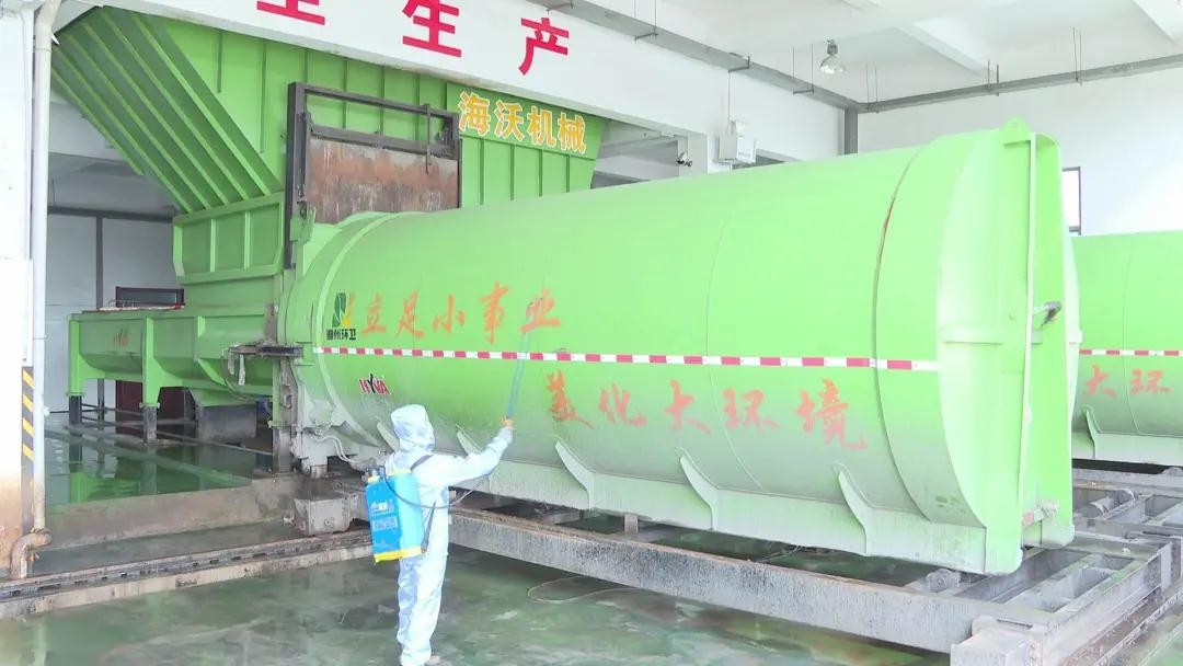 “为更好的落实疫情防控相关要求,做好管理工作,公司积极开展相关工作,所有职工全部接种新冠疫苗,全面排查是否接触外省及重点疫区人员等情况,人员上岗前必须佩戴口罩、穿防护服,做好日常消毒防护工作;在设施设备方面,每天对设备进行上午、下午各一次消杀工作,并做好记录,对进站垃圾清运车实行一车一消杀。潍坊潍州环卫有限公司清运部经理赵洪福介绍到。
