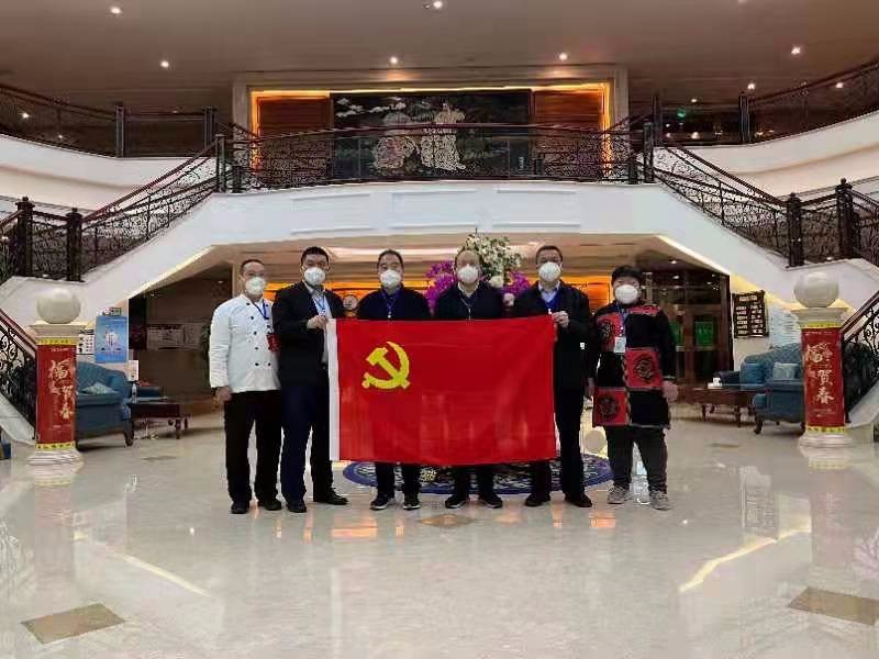 “我志愿加入中国共产党,拥护党的纲领,遵守党的章程,履行党员义务,执行党的决定……”在党旗前庄严宣誓后,温泉大酒店集中隔离点临时党支部的成员们迅速投入到了紧张又繁重的防疫任务中,每个人心中都升起了一面鲜红的党旗,引领自己勇敢前进。