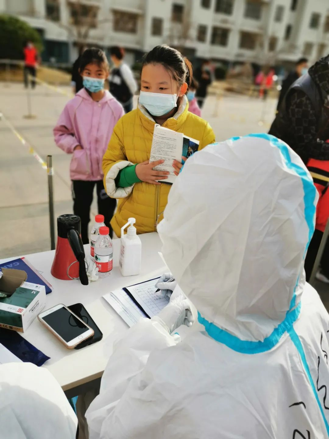 在全员核酸检测工作中,街道工作人员坚守岗位,与时间赛跑、全力以赴,争取以最短的时间采集更多的样本,结束早一分,群众的安全保障就多一分。在检测现场,“大白战疫军”化身登记员、协调员、指挥员,贴条码、看证件、解疑问、稳秩序、日夜奋战,尽职尽责地做好核酸检测工作。