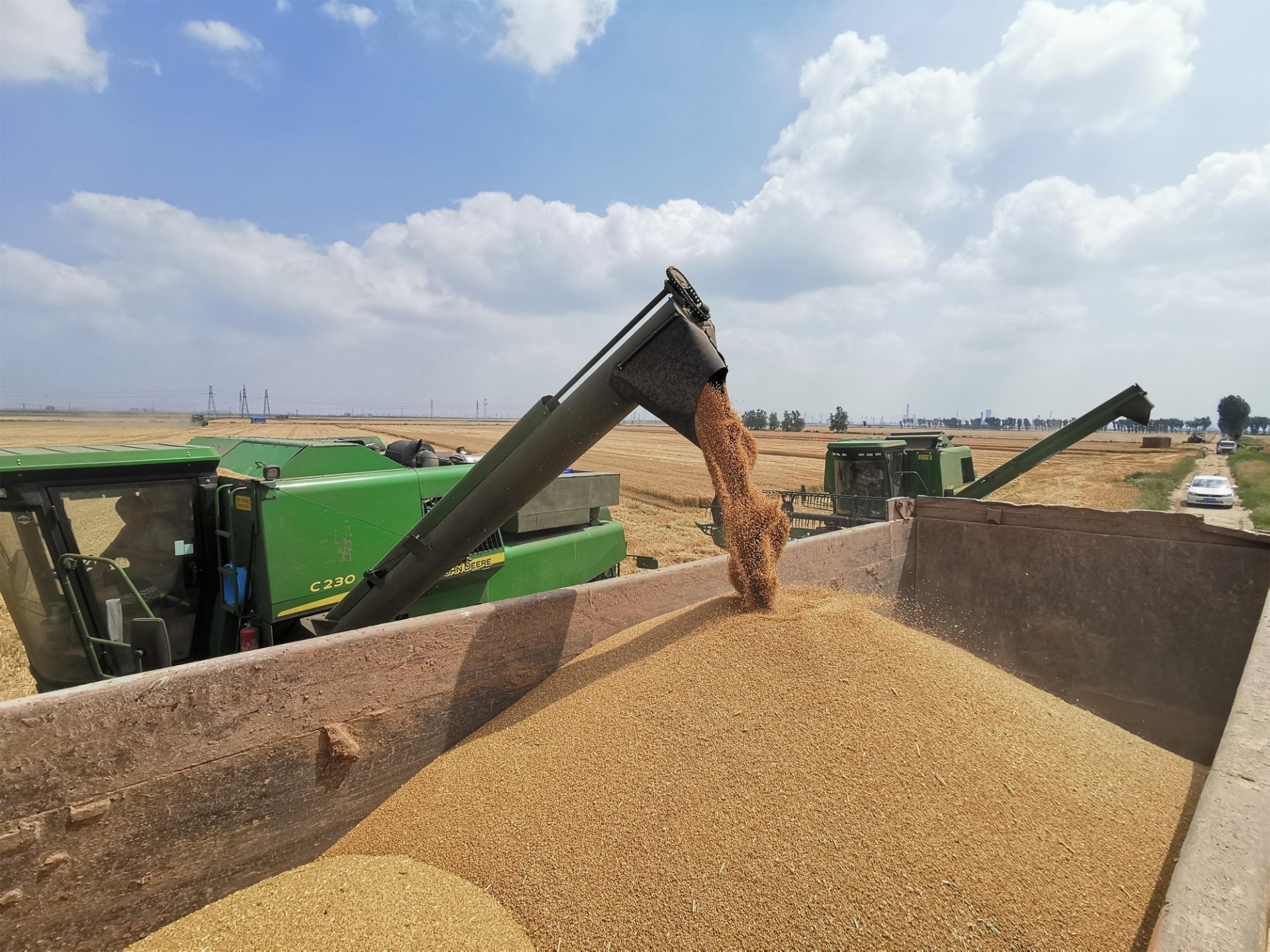 “今年小麦长势总体比往年要好,亩产能达550公斤,麦质也不错。”张月宝种着 3000 多亩小麦。他告诉记者,因为去年秋汛,导致小麦播种推迟,今年小麦收割时间也比往年稍微晚一点。在上级有关部门的指导下,农户精心管理,今年小麦出现了“活秆成熟”的现象,颗粒饱满,喜获丰收。再者,目前小麦收购价格不错,种粮效益比较可观。