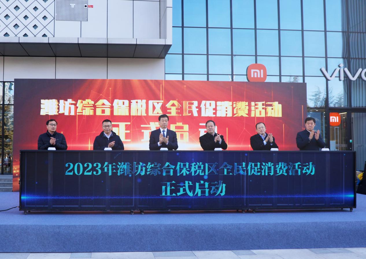 2月21日上午,潍坊综合保税区“全民促消费”活动启动仪式举行。潍坊市商务局党组书记、局长冯波,综合保税区党工委书记王龙堂,中国银联鲁中业务部、银联商务股份有限公司潍坊分公司有关负责人,企业代表,部分媒体代表参加活动。