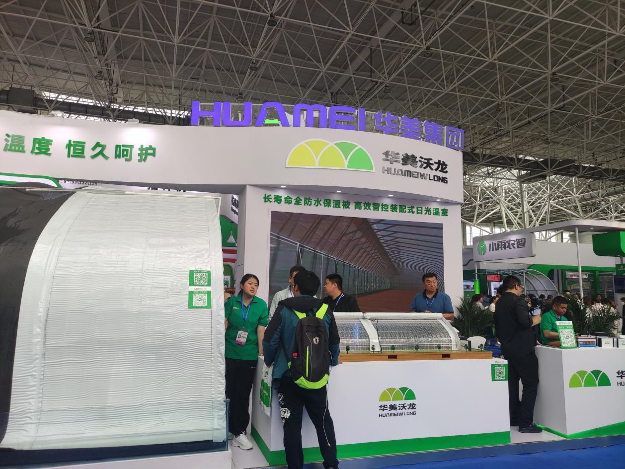 展区面积达16个标准展位的华美卧龙农业科技有限公司,是第二次来菜博会参展。企业技术负责人告诉记者,该企业主要提供高效智控装配式日光温室解决方案,及防水保温被研发,其日光温室冬季室内外温差可达40摄氏度。该负责人表示,公司一年只参加两个展会,菜博会就是其中之一。“这个展对我们来说挺重要的,要不然也不会跟主办方要这么大的固定展位。”
