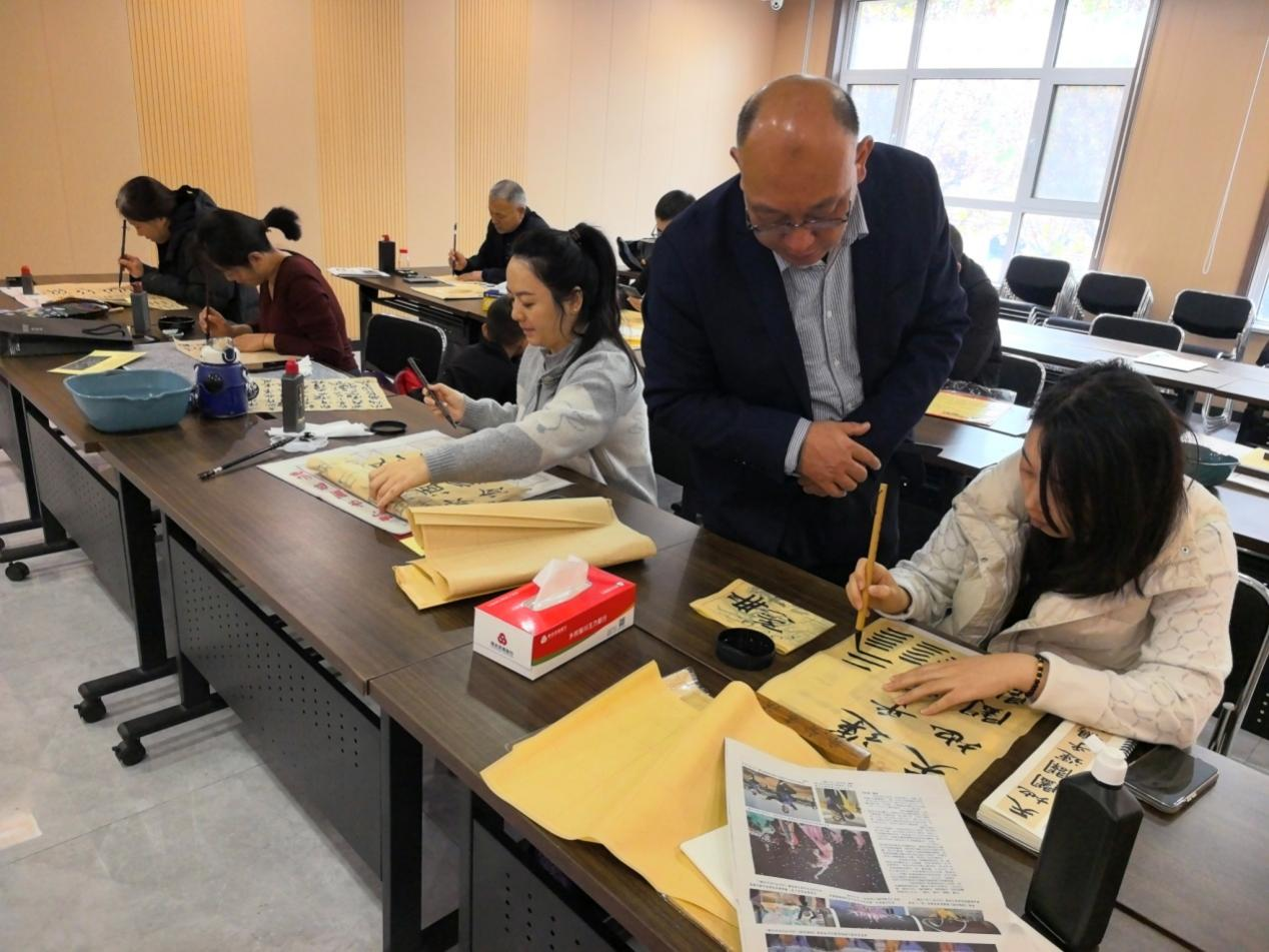 活动现场,来自潍坊市的基层文化建设指导员魏泮玮携专业笔墨纸砚如约而至。他打破传统讲台授课模式,主动走到居民中间,针对不同年龄段、不同基础的参与者开展“一对一”“手把手”指导。从执笔的力道、运笔的顿挫,到笔画的起收、结体的匀称,魏泮玮用通俗易懂的语言拆解书法难点,耐心示范、逐字批改,巧妙化解大家的畏难情绪。居民们围坐案前,认真聆听、反复练习,在墨香氤氲中感受汉字的线条之美与结体之趣,现场学习氛围格外浓厚。