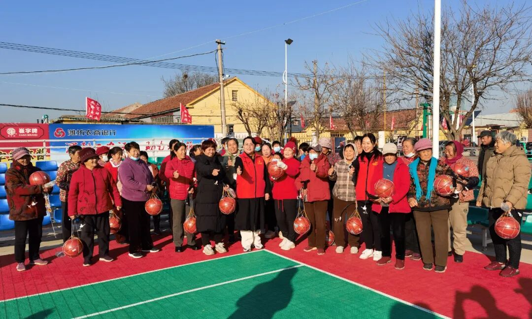 活动伊始,捐赠仪式温情上演。潍坊市金阳公益服务中心秉持“奉献、友爱、互助、进步”的志愿精神,为官路村带来了300个篮球及配套打气筒,用实际行动助力乡村体育文化繁荣。潍坊市政协常委、金阳公益理事长毕庆东代表捐赠方向官路村捐赠了篮球,这份沉甸甸的爱心,不仅是物资的支持,更是对乡村发展的深切关怀。随后,领导嘉宾们为村民代表发放篮球与打气筒,一个个崭新的篮球,承载着对村民们健康生活、快乐运动的美好期许。