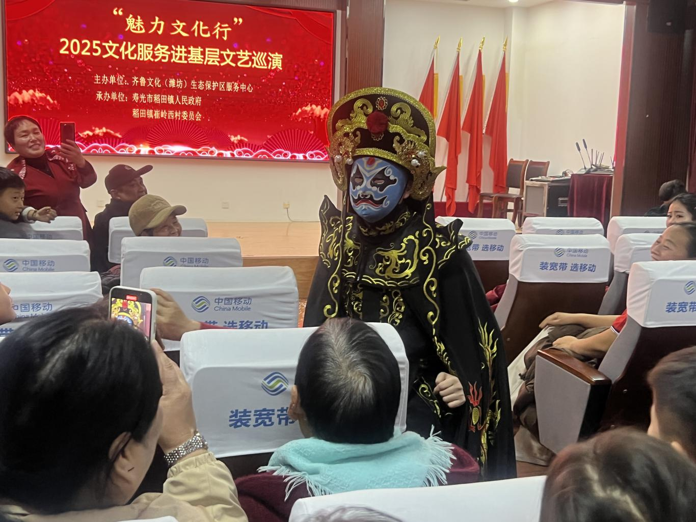 容纳百余人的会议室座无虚席。晚上7时许,演出在欢乐、热烈的氛围中拉开帷幕。据了解,本次演出由潍坊市基层文化建设指导员、齐鲁文化(潍坊)生态保护区服务中心发展研究部负责人柴德闯带队,与崔岭西村本土文艺爱好者们共同呈现。“节目形式多样,内容贴近乡土,既有专业艺术的熏陶,也有质朴乡情的绽放。”柴德闯介绍说。