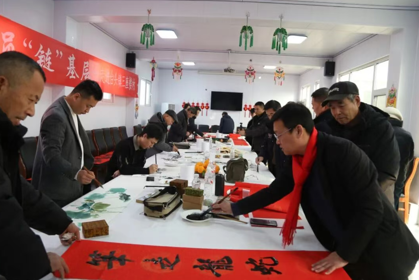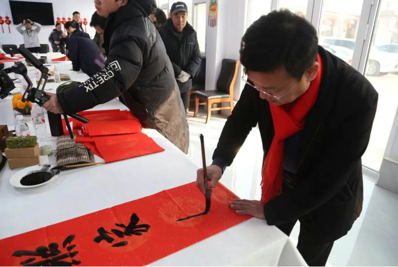 文化的温度,体现在满足人民群众对美好生活的向往上。在临朐县沂山风景区东镇村,基层文化建设指导员、市博物馆党支部副书记王国栋带队,将书法艺术送到村民家门口。铺纸研墨,挥毫书写,村民们从购买印刷春联变为亲手创作,在笔墨间感受传统年俗的魅力与书法艺术的滋养。王国栋与团队还走访慰问,将文化温暖与物质关怀一同送达。