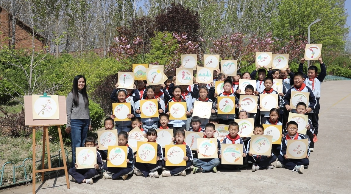 写生结束后,孩子们小心翼翼地捧着自己的作品,围在刘海杰身边,脸上满是自豪。随后,大家带着自己的樱花画作,在盛放的樱花树下合影留念,镜头定格下一张张纯真的笑脸,也定格下这场温暖的文化帮扶之旅。“今天的课太开心了,我以后还要学画画,画更多好看的花。”孩子们你一言我一语,分享着心中的喜悦。