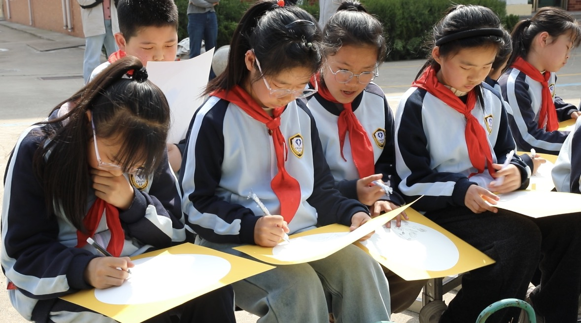 樱花树下,毛笔蘸取颜料的沙沙声、孩子们的小声讨论声、老师的指导声交织在一起,温馨而热闹。孩子们围坐在樱花树旁,有的认真临摹老师的示范,有的孩子发挥想象,给樱花加上了小小的叶子,还有的孩子在画纸角落画上了自己的笑脸,每一幅画作都充满了童真与创意,承载着孩子们对春日樱花的喜爱,更记录着他们第一次在室外用毛笔画画的珍贵瞬间。