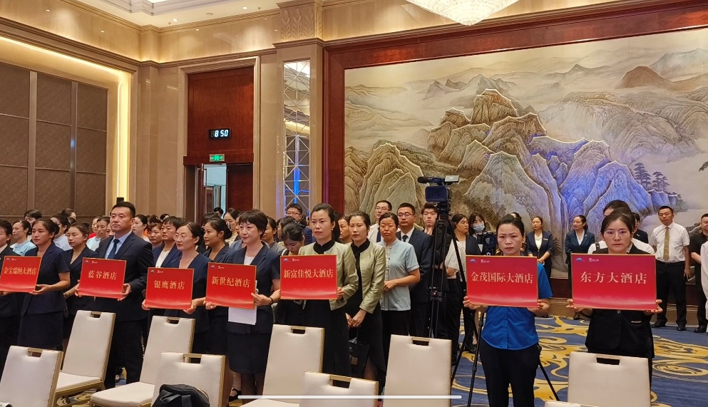 速豹新闻网徐宪玉 周子寒潍坊报道:7月24日,山东省“技能兴鲁”职业技能大赛——潍坊“富华杯”旅游饭店行业从业人员服务技能竞赛在富华大酒店举办。