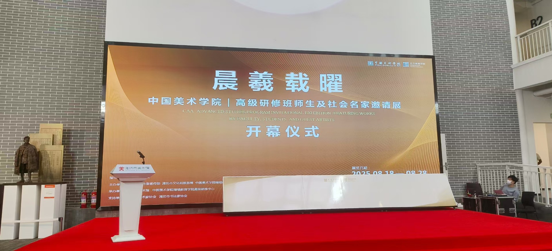 速豹新闻网苗露 阚荣新潍坊报道:为加强地方美术馆与国内顶尖艺术学府的互动交流,展示中国美术学院高级研修班师生新锐之作与潍坊名家的精品力作,2025年8月18日下午,由中国美术学院指导,中共潍坊市委宣传部、潍坊市文化和旅游局、中国美术学院继续教育学院、社会美育学院主办,潍坊市美术馆、中国美术学院继续教育学院高级研修中心承办的“晨羲载曜——中国美术学院|高级研修班师生及社会名家邀请展”在潍坊市美术馆隆重启幕。