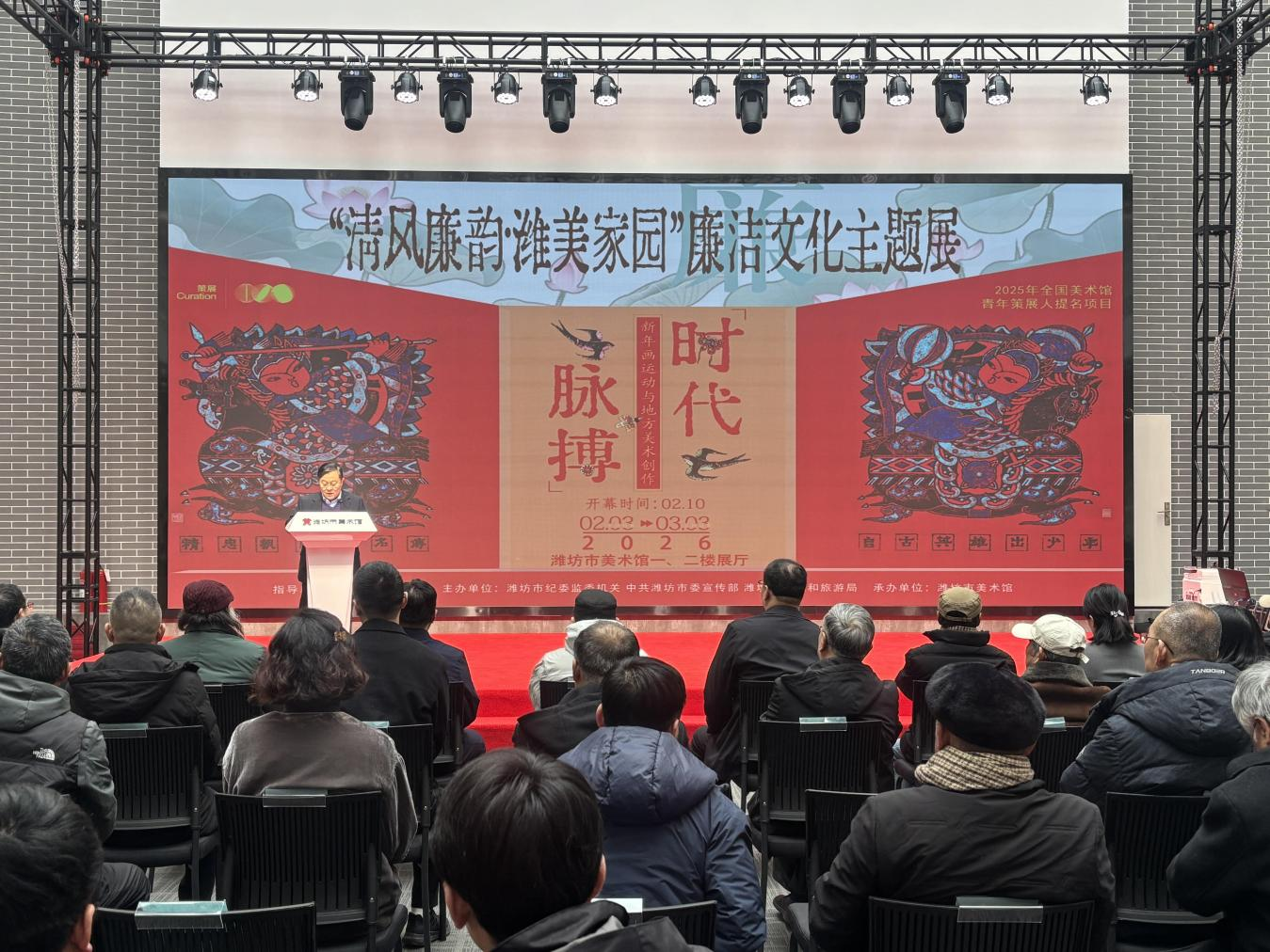 据悉,“清风廉韵·潍美家园”廉洁文化主题展呈现在潍坊市美术馆(东风街馆)A1、B1、B2、B3展厅,将持续展出至2026年3月3日。