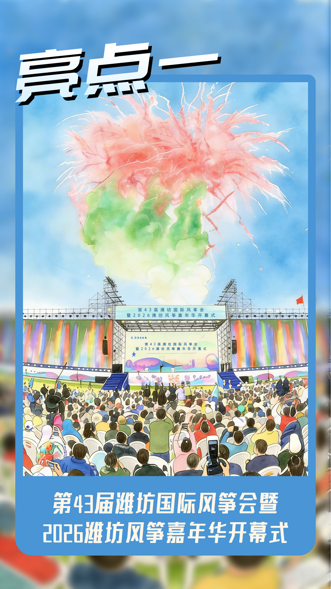 速豹新闻网潍坊报道:第43届潍坊国际风筝会暨2026潍坊风筝嘉年华精彩来袭!开幕式震撼、世界级放飞比赛、万人同飞、国际演出、美食挑战、望天+御风巡游、风筝市集、潮流表演、咖啡美食等亮点轮番登场。