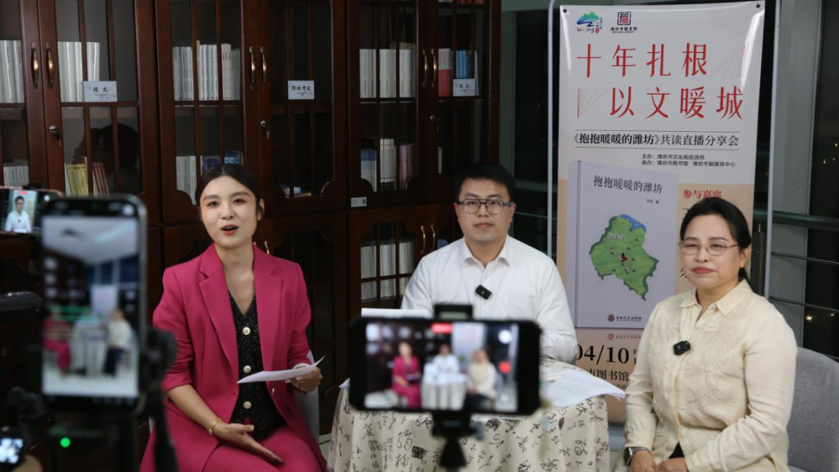 速豹新闻网苗露 肖莹坤潍坊报道:在首届“全民阅读活动周”暨2026山东省全民阅读大会即将到来之际,为贯彻落实《全民阅读促进条例》,推进“潍有书香”全民阅读品牌建设,2026年4月10日晚,由潍坊市文化和旅游局主办,潍坊市图书馆、潍坊市融媒体中心承办的“爱阅读”首场共读直播分享会《抱抱暖暖的潍坊》成功开播。活动通过潍坊文旅、潍坊晚报、齐鲁晚报、潍坊市图书馆等多平台同步直播,累计吸引12000人在线观看,点赞量突破10万,掀起一股线上共读、共品城市温情的热潮。