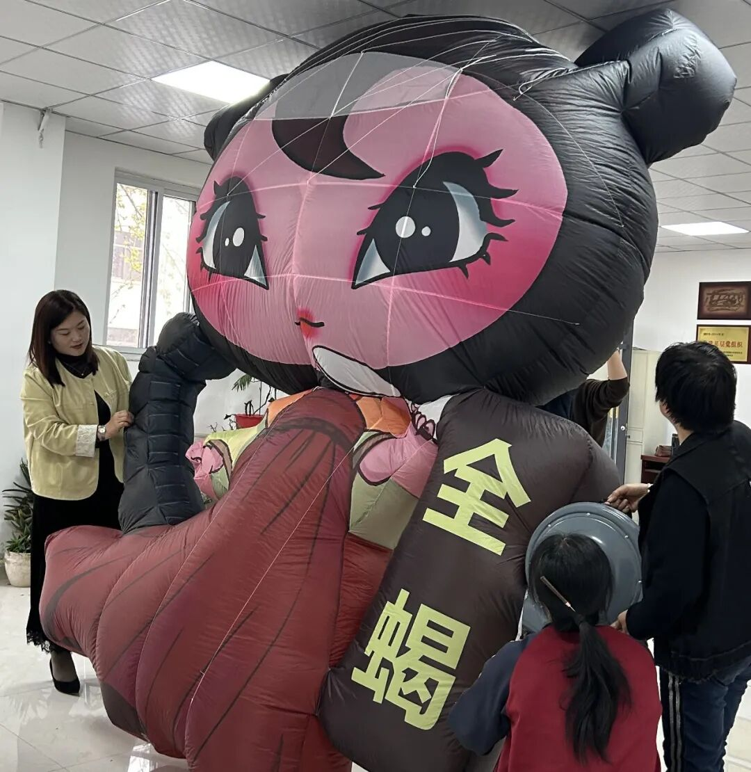 设计之初,团队面临不小挑战。如何在保留风筝工艺与审美结构的前提下,将九味道地药材的IP形象与中医药文化元素自然植入?潍坊风筝非遗传承人、风筝设计师陈向阳回忆:“这既不能破坏风筝的结构与整体美感,又要让每味中药材“活”起来,实现视觉与内涵的统一”。最终选择以软体串式风筝作为突破口——软体材质便于造型创新,串式结构则天然适合表现“九者相协、各美其美”的东方美学理念。