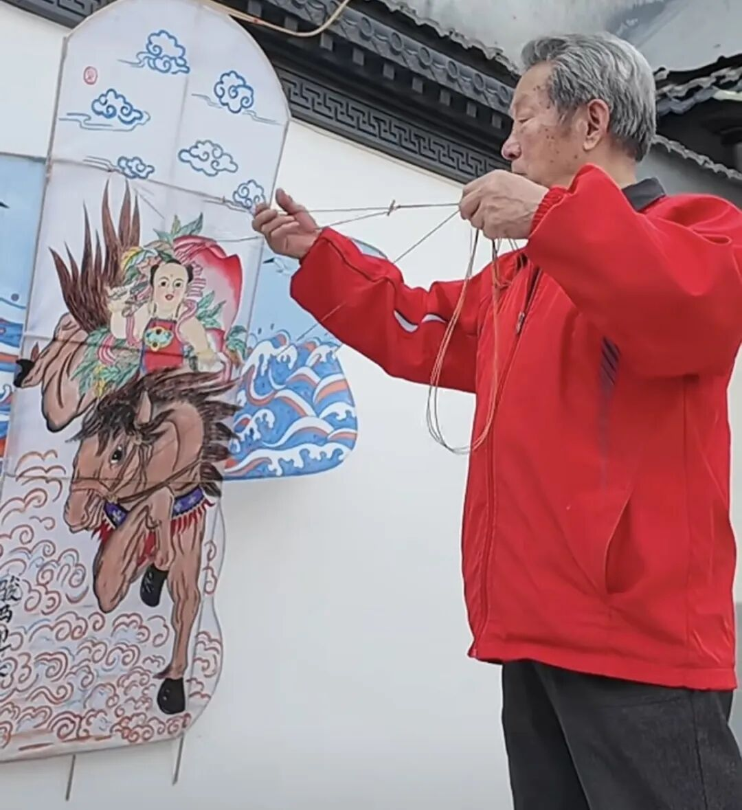 国家级非物质文化遗产代表性传承人张效东以寒亭年画为创作基底,打造出兼具文化厚度与艺术美感的匠心之作。风筝之上,奔腾的骏马昂首奋蹄,鬃毛飞扬间尽显昂扬姿态,象征着更好潍坊各行各业奔腾不息、奋勇争先的蓬勃气象;饱满的寿桃承载着人寿年丰、阖家安康的美好祈愿;每一抹色彩都承载情怀,将潍坊的文化底蕴、城市精神与美好愿景,尽数凝于这一方纸鸢之上。