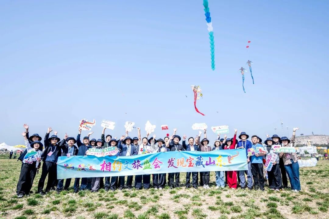 风筝文化与春日氛围相映成趣。活动现场举办“风筝相约 情牵齐鲁”主题放飞,与会嘉宾共同放飞“好客山东”创意风筝,各式风筝迎风腾空,勾勒出鸢飞满天、云端“比武”之势。