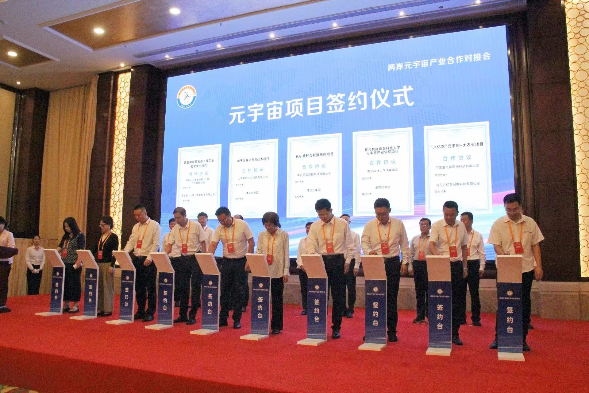 对接会上,两岸元宇宙领域专家围绕“元宇宙产业创新与两岸合作新动能”主题,就关键技术突破升级、拉长增厚产业链条、打造产业发展生态、加快企业高质量发展等内容开展交流合作。歌尔股份有限公司等4家两岸元宇宙领域企业分别作主旨发言;虚拟现实共性技术文化和旅游部技术创新中心等10个项目签约,举行了潍坊市元宇宙产业联盟揭牌仪式,潍坊市元宇宙产业联盟发起单位共同签署《潍坊市元宇宙产业联盟合作协议》。