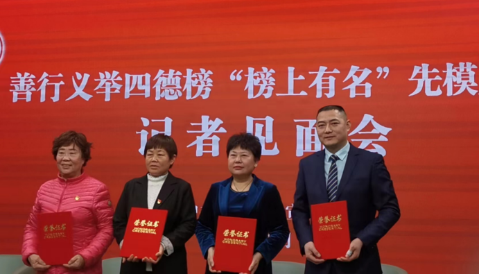2月5日,潍坊市委宣传部在潍坊融媒直播大厅召开了善行义举四德榜“榜上有名”先模人物记者见面会。仁德人物白冬梅,孝德人物王旭芳,诚德人物王明秀,爱德人物付强作为先模人物与大家见面交流,讲述他们孝老爱亲、诚实守信、勇于担当、奉献社会的先进事迹以及背后的感人故事,并回答记者的提问。