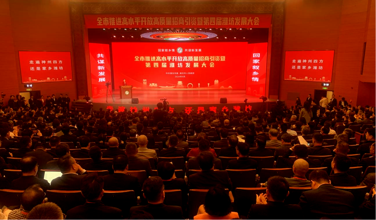 春风作伴还乡切,长空万里照归鸿。4月2日上午,潍坊市推进高水平开放高质量招商引资暨第四届潍坊发展大会在富华国际会议中心隆重开幕,海内外乡亲贤达、精英翘楚齐聚风筝故乡,畅怀话桑梓,聚力向未来,携手奔赴开放发展、成就梦想的新征程。