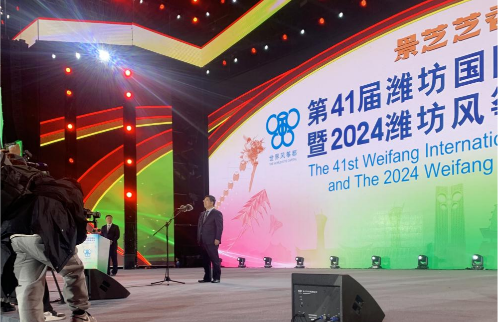 刘运在致辞中说,40年前,首届潍坊国际风筝会华美开幕,广联四海之谊,诚启开放之窗,让这座城市深度融入世界。潍坊历史厚重、风光旖旎、产业兴盛、机遇叠加,当前正聚焦聚力绿色低碳高质量发展,加快建设实力强品质优生活美的更好潍坊,盛情邀您品读文化潍坊,畅游大美潍坊,创富动力潍坊,携手更好潍坊,共赏齐风鲁韵的人文史诗,共览岱青海蓝的山海画卷,共奏向新图强的发展乐章,共逐拼搏奋进的时代大潮。让我们相约潍坊,领略经世流芳的丰润文化,感受诗和远方的浪漫惬意,谱写合作共赢的发展新篇,共赴璀璨浩瀚的星辰大海。