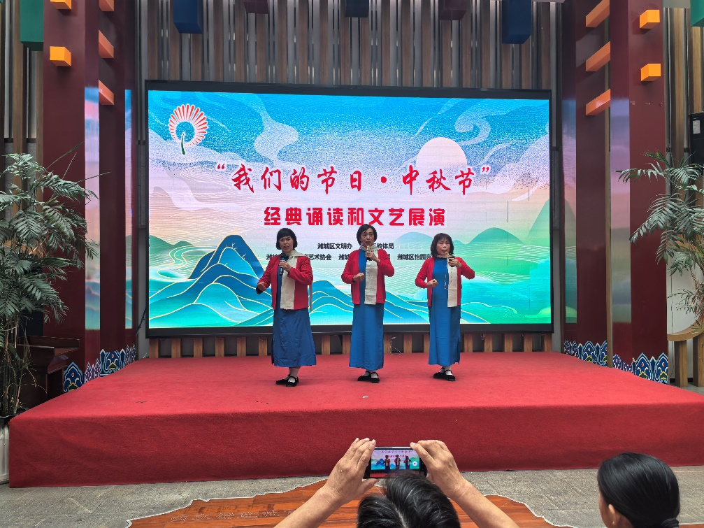 “我们的节日·中秋节”经典诵读和文艺展演,由潍城区教体局、怡园京剧社、主旋律艺术团等单位和组织的志愿者、学生们,倾情演绎经典诵读、红歌合唱、京剧展演等多个节目,活动现场演员们慷慨激昂、载歌载舞、异彩纷呈。
