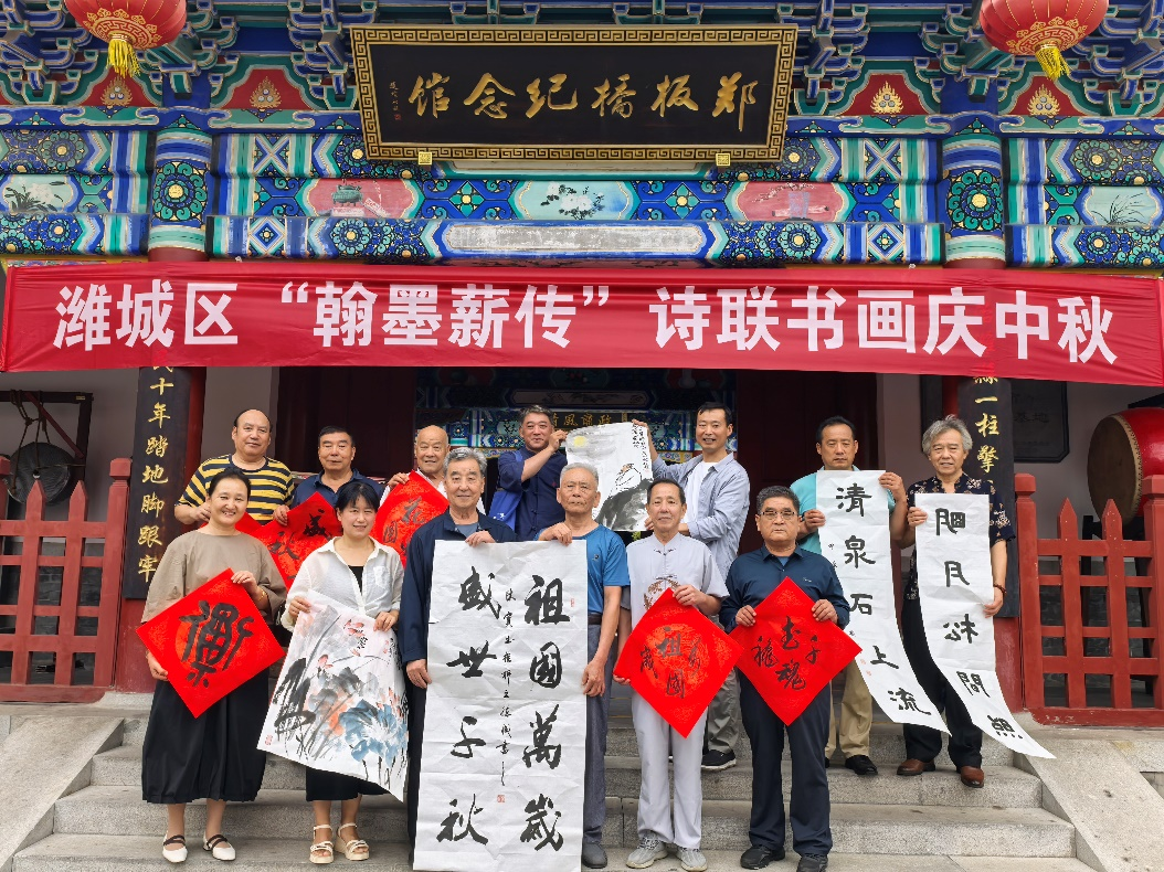 翰墨薪传”诗联书画庆中秋活动,由区诗词楹联学会、潍州书法家协会、区美术家协会等文艺组织的专家学者,走进郑板桥纪念馆,挥毫泼墨,现场为大家创作“庆中秋 迎国庆”文艺作品,一副副楹联佳作,一张张国画精品,为“团圆中秋”增添了更多文化底蕴。