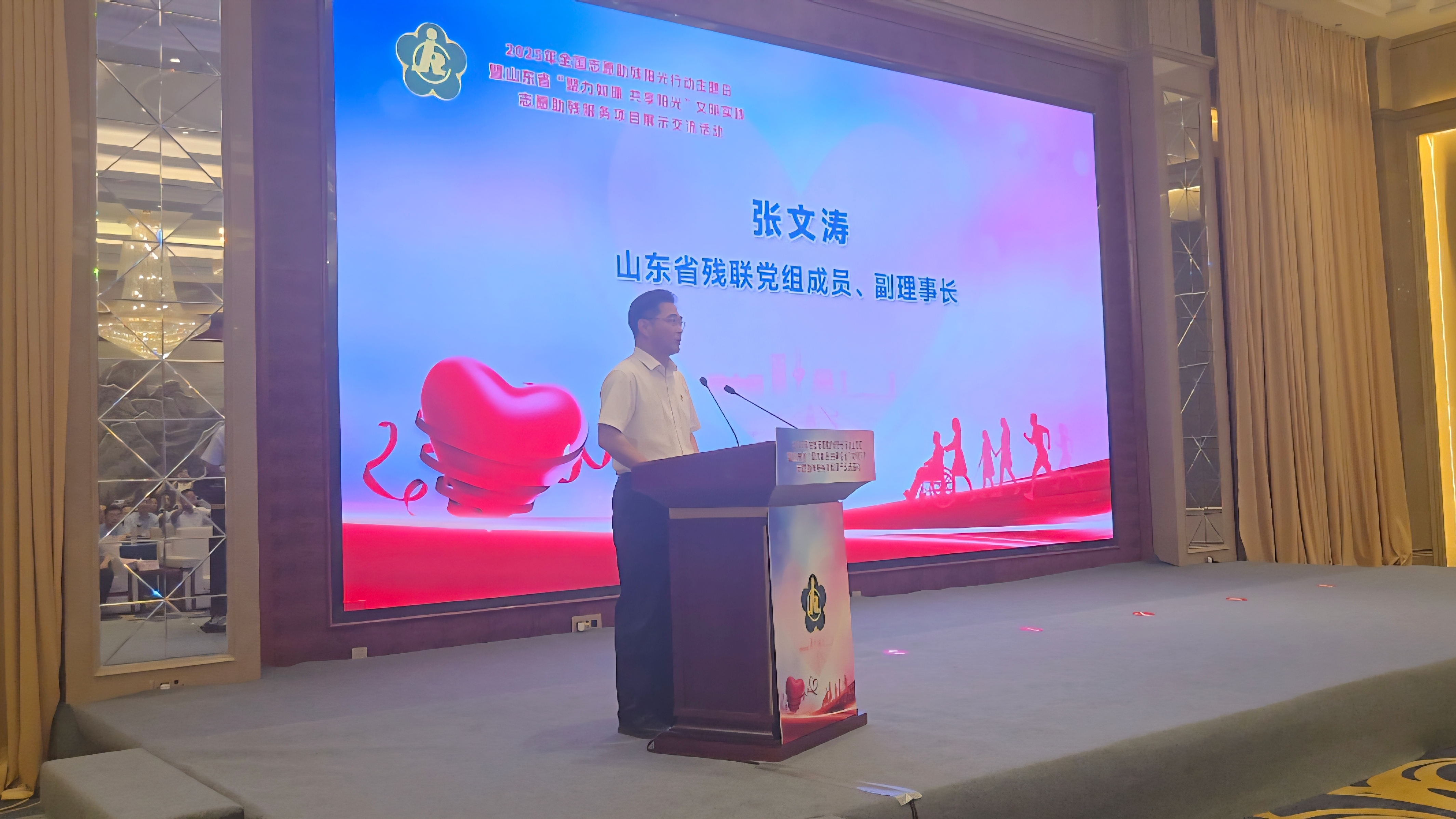 张文涛在讲话中指出,在中国残联和中国助残志愿者协会的大力指导下,我省聚焦残疾人全面发展和促进残疾人社会融入,坚持把志愿助残作为服务残疾人、发展残疾人事业的重要抓手,持续推动将志愿助残纳入全省志愿服务大局,逐步构建起全领域社会动员体系,志愿助残已成为“厚德齐鲁地、美德山东人”的一张靓丽名片。特别是聚焦残疾人急难愁盼,通过创新实施“聚力如康·共享阳光”等品牌项目,常态化开展了康复训练、学习教育、就业帮扶、生活照料等个性化服务,有效架起了社会公益力量、服务机构和困难残疾人牵手同行的爱心桥梁,产生了实实在在的帮扶效果。同时要求,要深入学习贯彻习近平总书记关于残疾人事业的重要论述和指示批示精神,充分发挥桥梁纽带作用,深入开展创新试点,广泛动员社会力量,积极营造扶残助残浓厚社会氛围。
