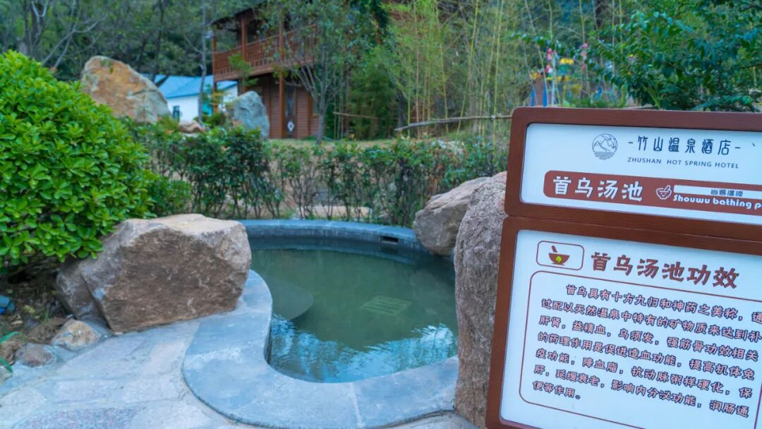 竹山温泉依山傍水,山林环绕,气韵天然。景区设有接待大厅、茶水间、多功能桑拿房、餐饮住宿以及独立温泉别墅等配套功能设施,拥有室内大泡池2个、室外泡池21个、儿童戏水池1个、无边际游泳池1个,能满足不同群体的个性需求。其温泉水取自地下3000米,约50度,富含锶、钠、钙、硫等多种微量元素,又称硫磺泉,具有软化皮肤、康养保健的功效。持一码通可全年免费体验三次,需提前两天预约,预约电话为0536—6066966。地址位于潍坊市诸城市竹山生态谷。
