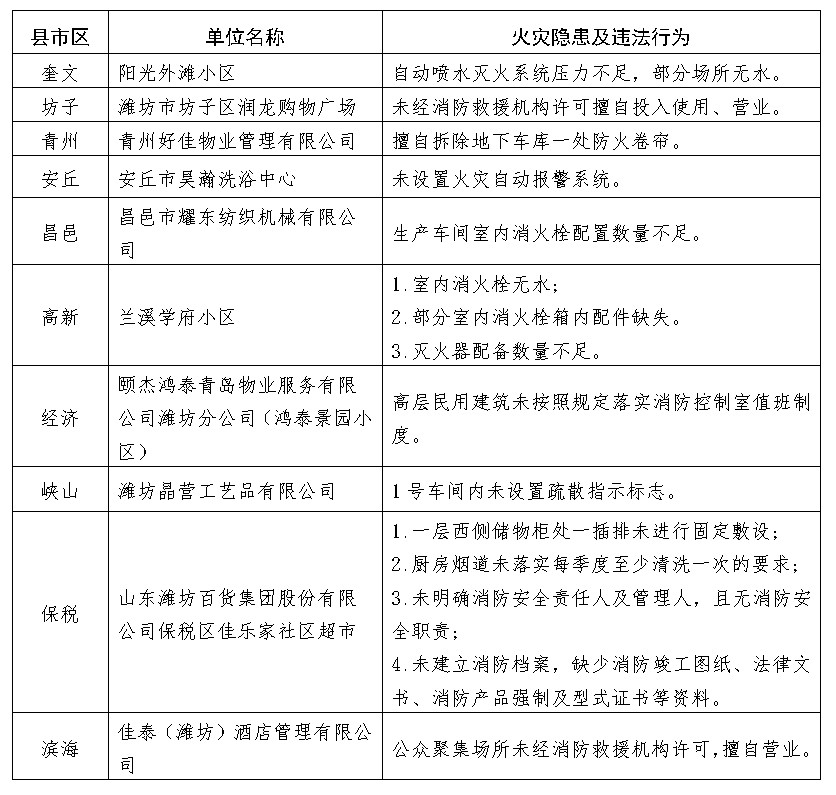 为深化火灾隐患排查整治,净化社会面消防安全环境,现对近期检查发现的部分火灾隐患单位进行曝光,希望各县市区、有关部门和相关企业高度重