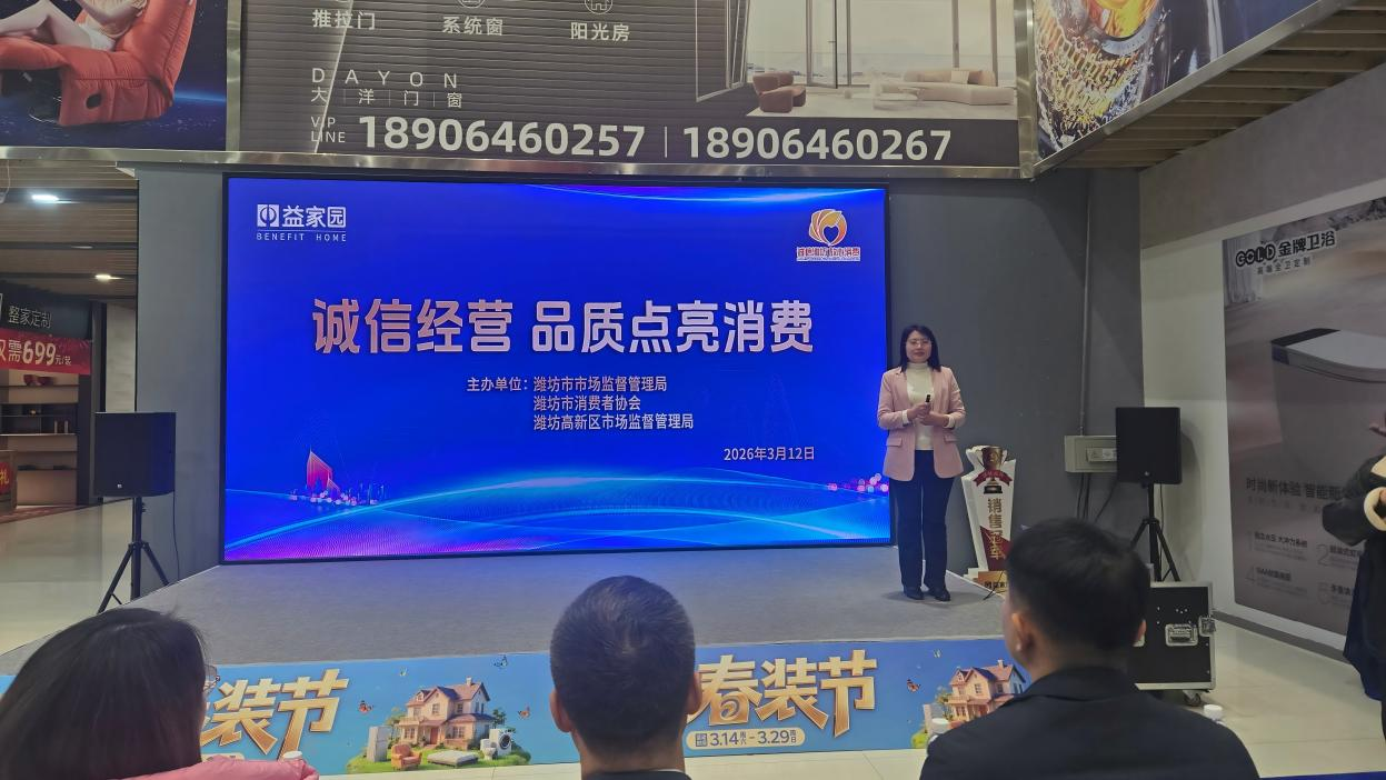 速豹新闻网苗露 张馨月 通讯员 王林 潍坊报道:3月12日,潍坊市市场监管局、市消费者协会走进中百益家园,开展2026年诚信经营 品质点