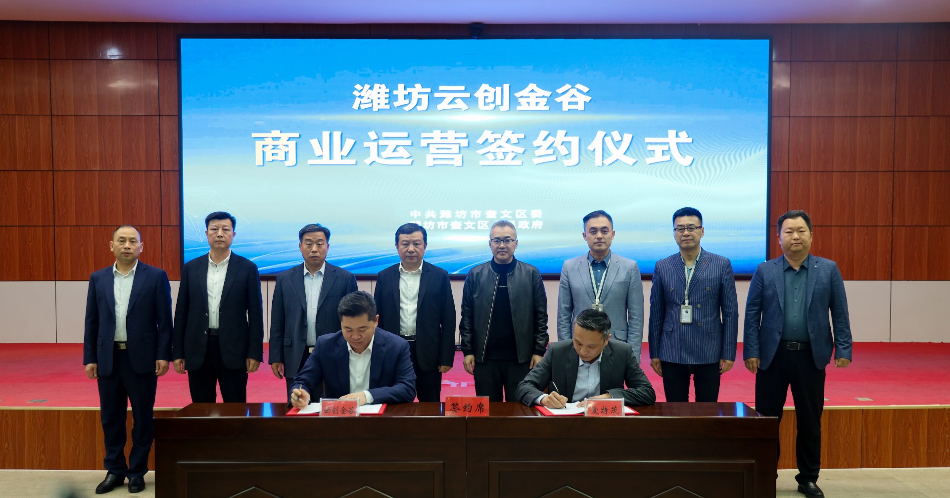 4月18日,潍坊云创金谷商业运营签约仪式在奎文区政府举行。奎文区委书记周俊出席并致辞。奎文区领导李光明、周晓东,区直各有关部门,潍坊恒建集团有限公司,潍坊云创金谷产业发展有限公司,北京爱特茂商业发展有限公司及品牌商代表等参加活动。